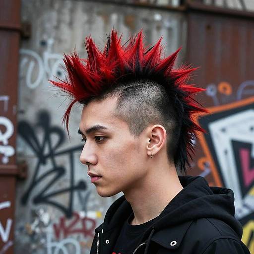 Wolfcut goth girl leaning against rusty metal fence, her hair volume styled in wolfcut with a pastel pink hue, dark lipstick and multiple piercings, dressed in oversized black band tee and combat boots, urban decay background with dim street lamps.