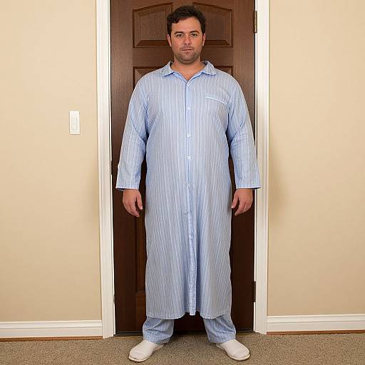 Photograph of a young woman with long, dark brown hair and fair skin, wearing pink, striped pajamas, sitting on a bed with white, floral-patterned sheets. She gazes over her shoulder with a neutral expression. A pink curtain is partially visible in the background.