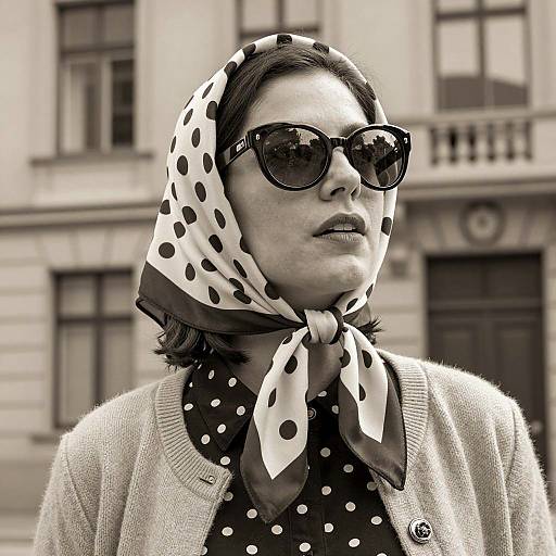 woman wearing vintage 1950s halter-neck polka dot swing dress with fitted bodice, flared skirt and matching fabric neck strap in black with white polka dots on medium-toned woman with black beehive hairstyle and cat-eye makeup posed sitting gracefully in a diner booth, hands resting in her lap, looking toward the camera in checkerboard floor diner with red and white decor, slightly dramatic side lighting emphasizing vintage glamour, retro pin-up style diner photography, high resolution, ultra-detailed