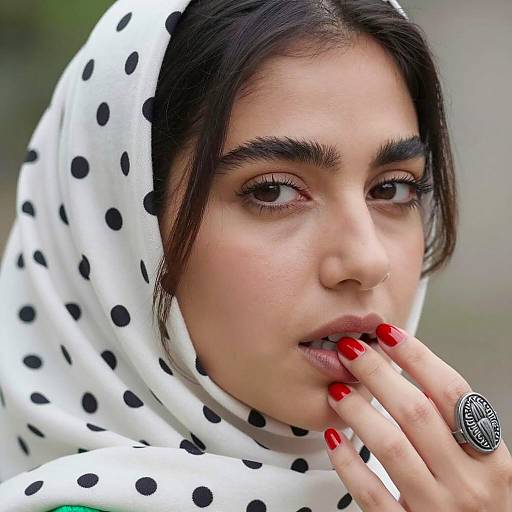 Pin-Up Updo hairstyle on woman, wearing red halter-neck dress with white polka dots, in retro diner, captured in fashion editorial style with warm backlight.