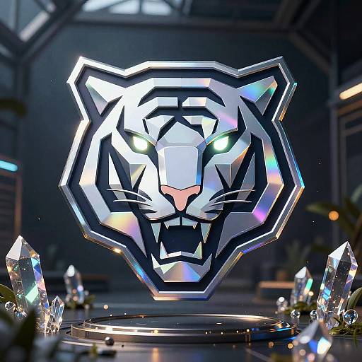 Elegant logo featuring a majestic saber-toothed tiger profile with intricately-crafted fangs, set against a striking blue circle. German design precision with deluxe craftsmanship, striking and captivating, suitable for high-end branding.