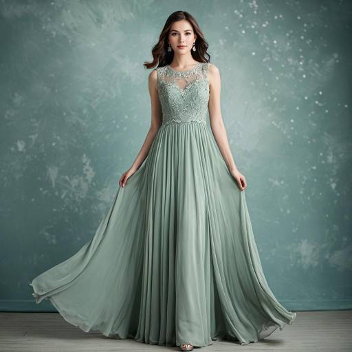 Graceful dancer dressed in a shimmering flowing gown with sequins, standing against a backdrop of an opulent elegant ballroom filled with people. Full-body depiction, highly detailed and photorealistic.