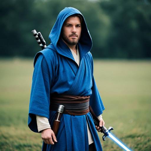 Miyamoto Usagi cosplay outfit sharp blue samurai kimono with black traditional pants, tall rabbit ears, white fur, sleek warrior style cosplay costume idea, soft lighting, bokeh