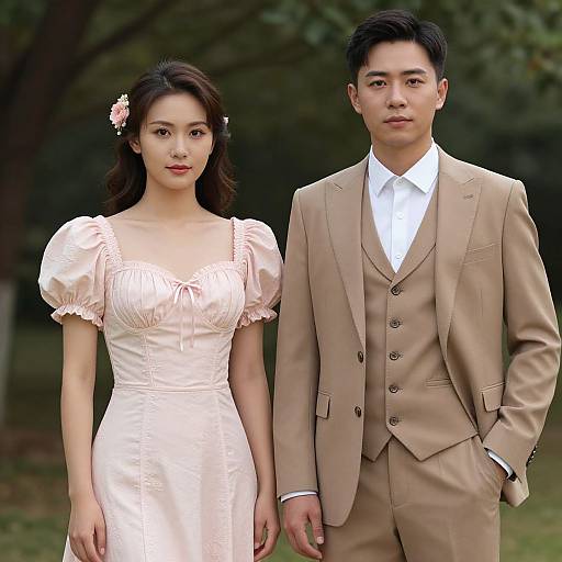 blue wedding suit groom, 1boy, male focus, solo, necktie, suit, blue suit, formal, outdoors, flower, holding, blurry background, pants, white shirt, shirt, blurry, brown hair, holding flower, jacket, realistic, collared shirt, blue necktie, standing, blue pants, blue jacket, looking at viewer, day, plaid