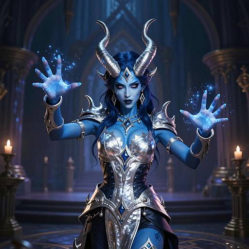 Digital anime-style illustration of a pale-skinned, blue-haired female character with white flowers in her hair, lying on her back with legs raised. She wears a blue outfit and black boots, set against a dark, starry background with reflective surfaces. Her exposed buttocks are prominently displayed.