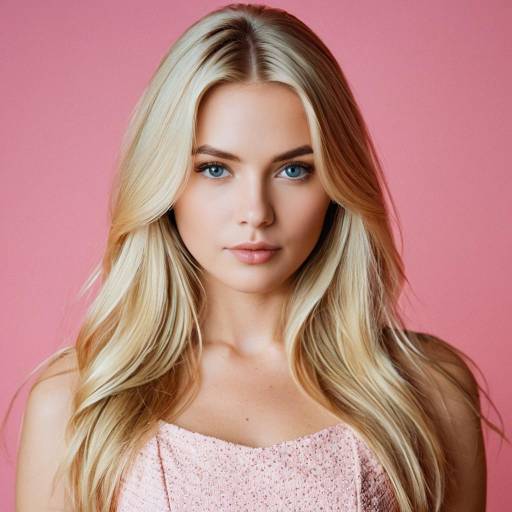 image in the style of Minimalist Art, young woman, wavy shoulder-length hair, slender frame, lingerie bralettes, silk lingerie set, soft blush pink studio background
