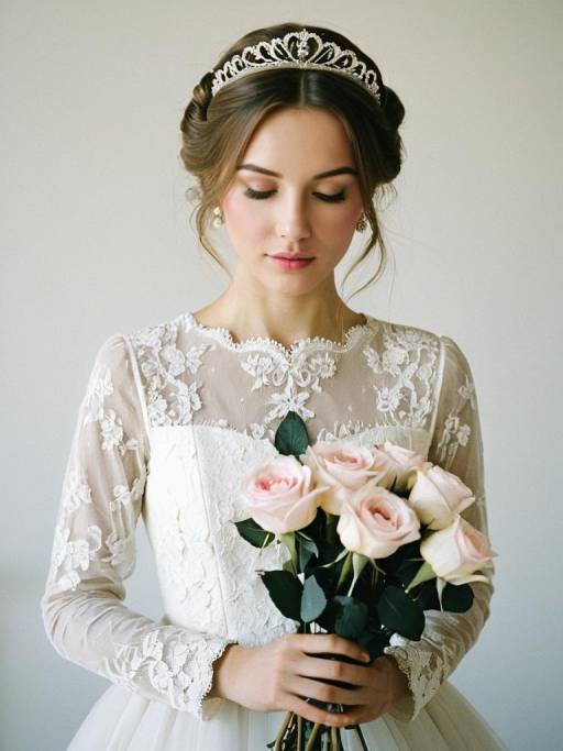 Your answer: Photo-shoot, giggling bride-to-be, updo hairstyle, hourglass shape, Lingerie Robes, soft pastel tones, Saturated Pastel Gradient studio background