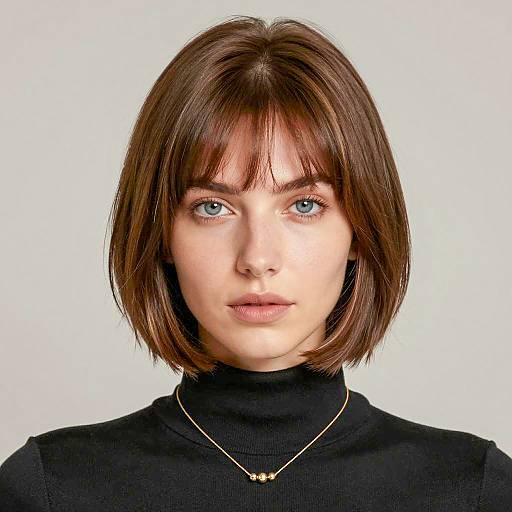 Chocolate Brown hairstyle on fashion model, wearing satin top, in graphic studio, captured in fashion editorial style with soft spotlight.