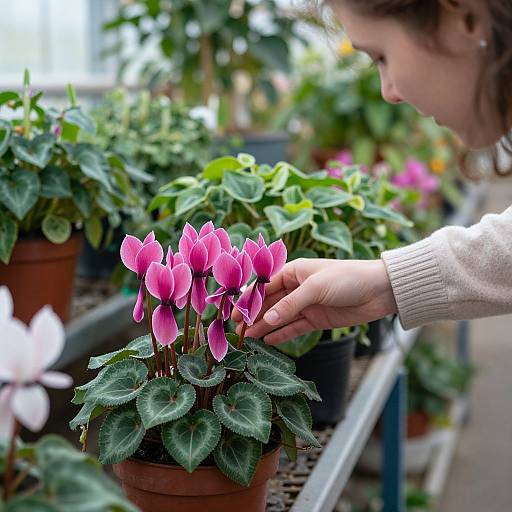 full body, a young girl with curly hair and big glasses, wearing a denim overalls and a striped t-shirt, holding a paintbrush, surrounded by a variety of plants and flowers, potted plant, tree, flower pot, jar, bottle, glass, bright ambiance, tranquil setting, green background