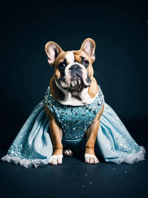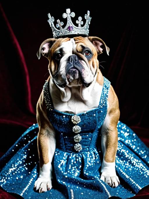 An aggressive bulldog on a bustling street corner. It stands boldly sitting, ready to confront any challenge.