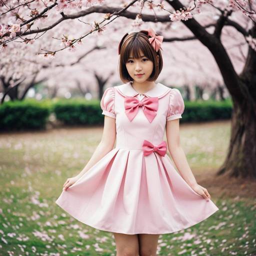 Cherry Blossom, woman in a pastel floral dress posing for a picture