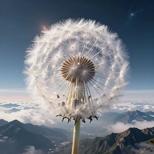 A city built upside-down beneath the clouds, tethered by glittering umbilical-like rain clouds, where aerial gardeners tend flora that grows toward the sky.