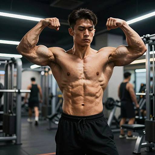full body, 1boy, solo, robust male form with deep cappuccino-toned skin, lustrous bronze hair and radiant hazel eyes teeming vigor, clenched hands, hands up, emphasis on anatomy, piercing stare, grey background