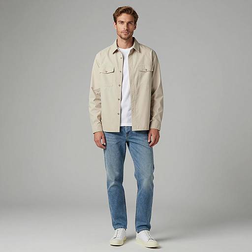 Woman, casual chic, white blouse with lace-up neckline and bishop sleeves, blue skinny denim jeans, dark brown platform sandals with ankle straps. --sref 1388