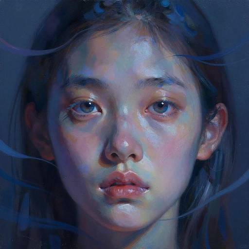 An expressive oil pastel portrait of a pensive young artist with thoughtful introspection, using bold strokes and a dynamic mix of colors for depth and emotion.