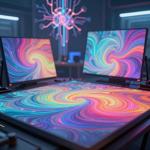 AI for art creation transforming a blank canvas into vibrant abstract artwork, futuristic digital brushes blending colors seamlessly, high resolution, dynamic lighting, creative and innovative atmosphere