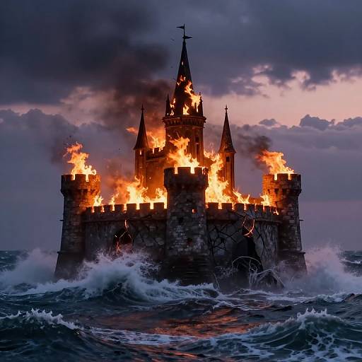 A highly detailed ASCII representation of a fantasy castle, featuring high-contrast monochrome and a crumbling ancient temple.