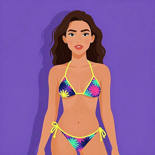 Woman, trendy fashion, black cropped tank top with wide straps, V-neck, cut-out details at the waist, bodycon mini skirt in aquatic blue with white and lighter blue horizontal stripes, high waistline. --sref 1399