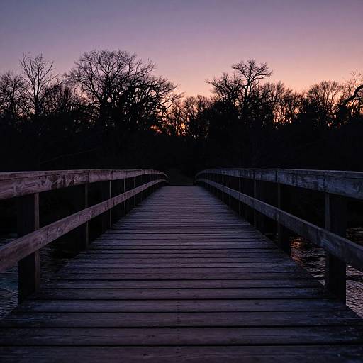 Photograph of a crumbling bridge at dusk, framing the broken arches with a ghostly presence lurking, long exposure for ghostly blur, cool white balance for spectral feel, haunting and ethereal atmosphere