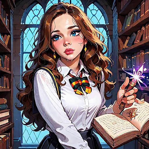 Photo. Broad Back woman, Wavy Lob, harry potter outfit, Striped tie and red and gold, silk, romantic sepia effect