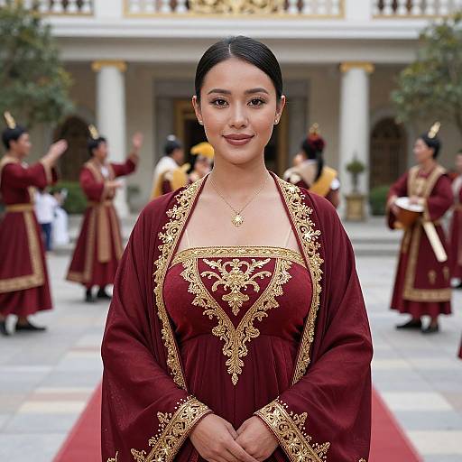 A full body photorealistic beautiful dress made entirely of silk with silk texture, gold and silver, worn on a beautiful Asian woman, ((elegant)) fashion designed, influenced by traditional fabrics, highly detailed, 8k sharp focus, photorealism