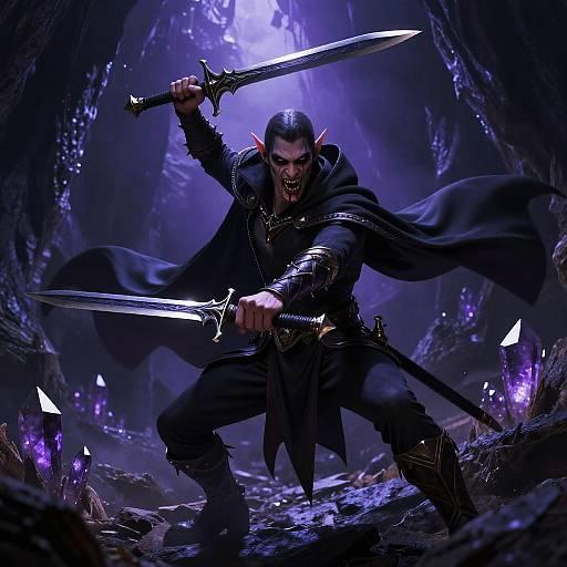 sneaky elven rogue, wearing dark leather armor with intricate silver patterns, hiding in the shadows, enchanted forest, tense atmosphere with rustling leaves and distant whispers.