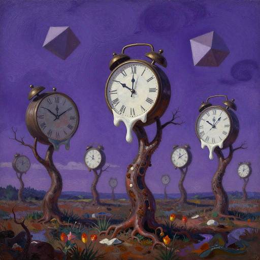 Surrealist vision in the style of Salvador Dalí, dreamlike and precise, featuring distorted faces and strange distortions, vibrant and detailed, evoking a sense of wonder