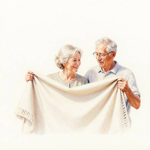 A late afternoon glow enhancing an elderly couple walking against the rich amber and crimson tones, creating a captivating scene.