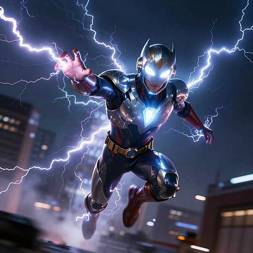 Inside a swirling storm, a lightning elemental dances gracefully amidst the thunderclouds. Rendered in a fantasy style, the scene glows with a warm color scheme, as flashes of light illuminate the surroundings, creating an ethereal ambiance. Flickering shadows and intricate bolts convey fluid motion, capturing a high level of detail in 4K resolution. The cinematic atmosphere is enhanced by soft light casting a magical glow, crafting an enchanting and captivating scene that feels alive with warmth and wonder.