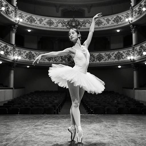A highly detailed portrait of an elegant ballerina in the style of art nouveau illustration, capturing a passionate focus with delicate pointe shoes.
