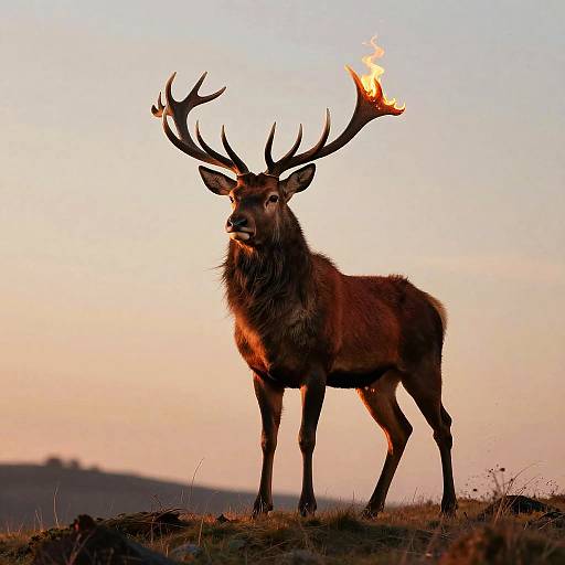 a bison perched high up on a hilltop, surveying its vast plains kingdom from a position of power and authority. Keywords: robust, dominant, fearless, confident, solitary.