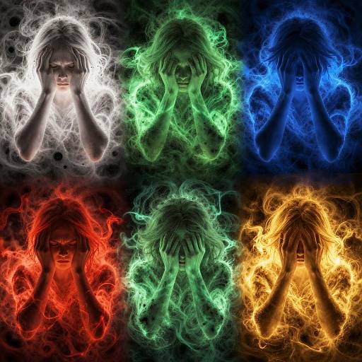 Intense emotional illustration of heartbreak, glacial blues, pale mint, pearlescent opal highlights, shadowed graphite accents, cracked porcelain, high-quality, digital painting, deep and intense emotions