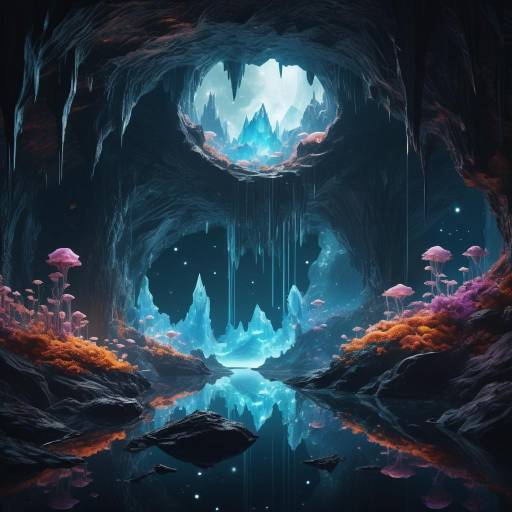 Envisioning the vastness of the cosmos, a mystical ethereal lace realms where timeless guardians of forest waterways roam among shadowy depths. Bathed in ethereal glows, this scene is rich in intricate details, evoking a sense of wonder and cinematic beauty.