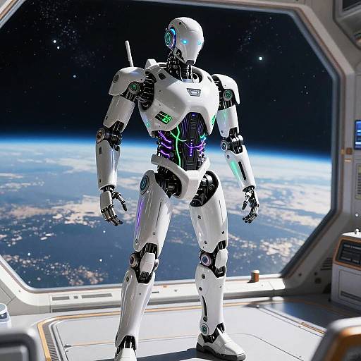 Exotic cyborg assassin, extra large cleavage, athletic build, robotic limbs, stealth black tactical suit.