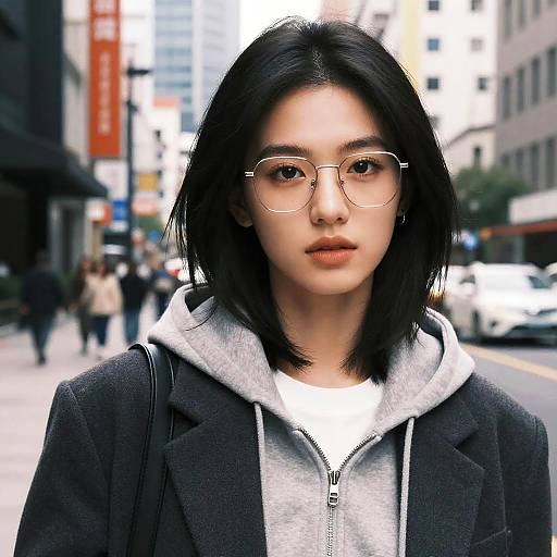 Ladies Hairstyles For Over With Glasses, a woman in a white top and jeans standing in front of a gray background