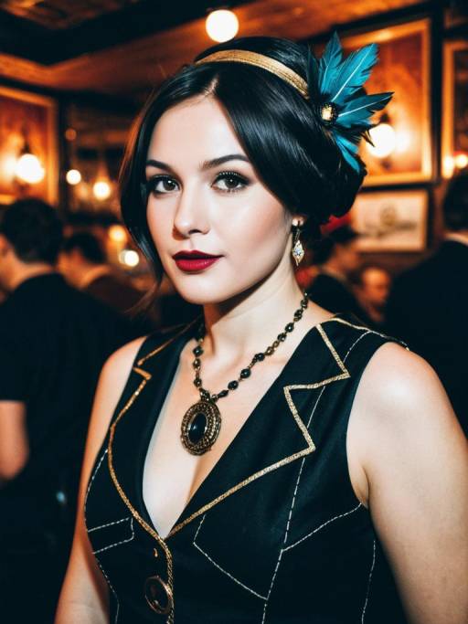 famous film fancy dress,1girl, dress, realistic, blurry, blurry background, orange hair, looking at viewer, solo, puffy sleeves, solo focus, short sleeves, collarbone, jewelry