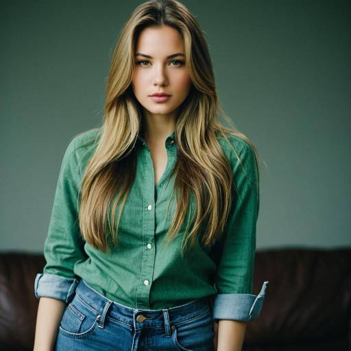 blunt cut hairstyle female,1girl, solo, realistic, shirt, looking at viewer, upper body, blurry, lips, brown hair, blurry background, messy hair, closed mouth, short sleeves, t-shirt, green eyes