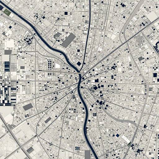 Overhead satellite imaging of a river delta, featuring winding waterways and lush wetlands, a small fishing boat navigating through, illustrated in a vector style, precise and detailed