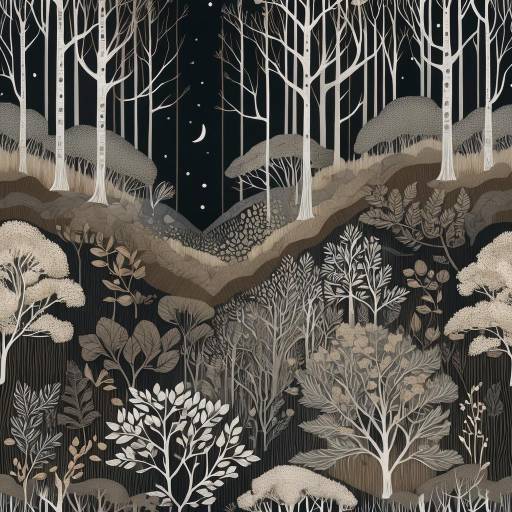 Mysterious forest scene in dark rich colors, lots of green and brown and deep blue color variations, no black color, drawn in manga anime art style, contour, clean white background, t-shirt vector graphic