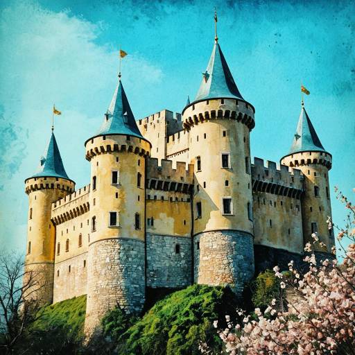 A medieval castle, viewed from above. grand battlements, vast courtyards.