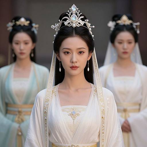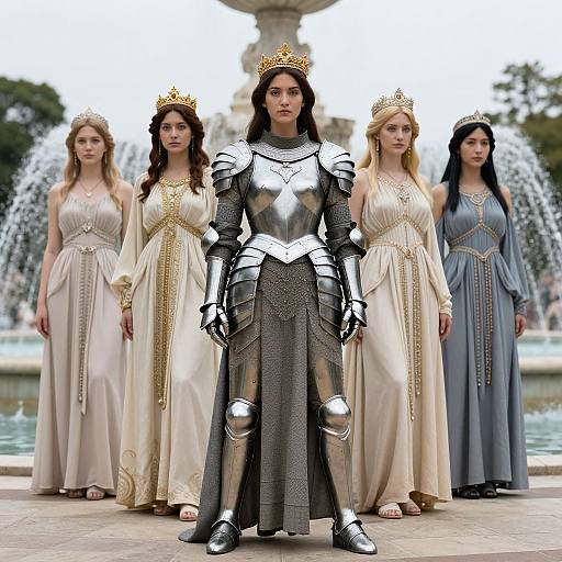 Hera – Queen of the gods, goddess of marriage and family, depicted as a commanding deity wrapped in a cloak made of sun rays and phoenix feathers, surrounded by a sacred grove thriving under a shimmering, star-studded sky.