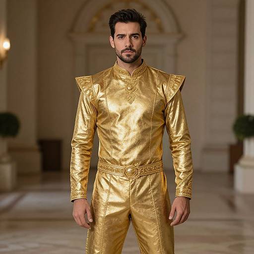 gold shoulder pads decorated with ornate patterns, worn by an elegant queen in a medieval castle setting, soft natural light highlighting the metal texture, exquisite craftsmanship