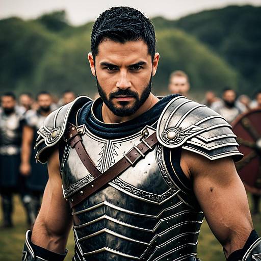 A mysterious ancient warrior echoing myths of Hercules, wearing majestic armor adorned with golden leaves with a lion emblem. The artwork is a highly detailed digital painting, showcasing glowing accents and intricate designs, inspired by the styles of wlop, Mars Ravelo, and Greg Rutkowski.