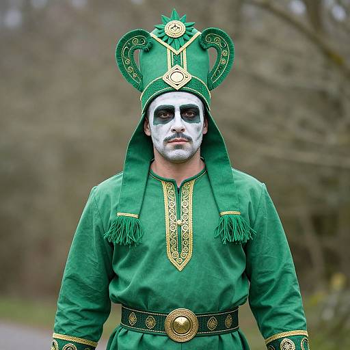 confident teenager wearing a forest green cropped top tied at the front, sitting in a vibrant carnival