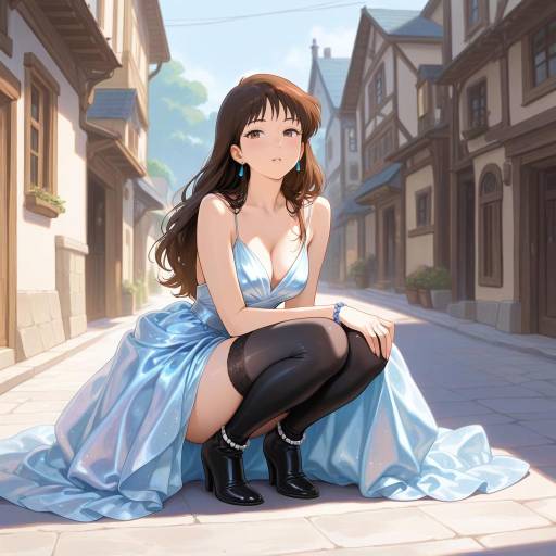 1girl, brown hair, long hair, closed eyes, closed mouth, solo, squatting, barefoot, toes, toenails, feet, hyper-detailed, modern lifestyle, bustling cafe, oversized sweater, centered barefoot pose, relaxed