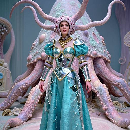 A mesmerizing 3D-rendered scene captures a dreamlike ocean horizon where vibrant pink and blue clouds, reminiscent of a sentient fog, swirl and form ethereal landscapes under dramatic golden-hour lighting, evoking a sense of imagination and transformation.