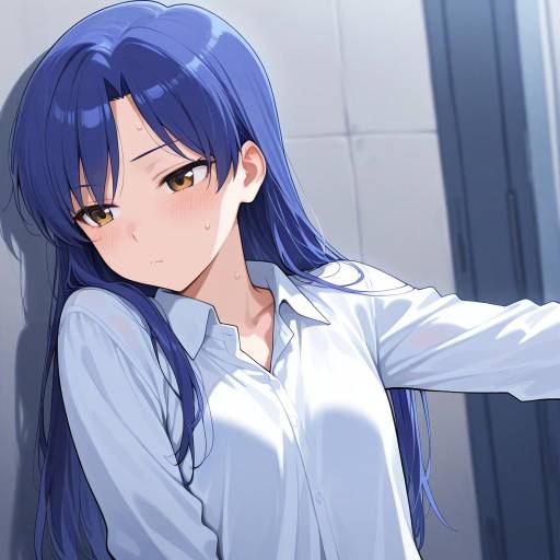 hakamichi shizune, katawa shoujo, 1girl, blue eyes, glasses, semi-rimless eyewear, short hair, blue hair, yamaku high school uniform, yamaku high school uniform, white shirt, black bowtie, blouse, by artist shirogane hina, dark_illustrious