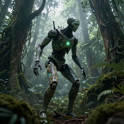 AI generator human, a portrait of a cybernetic human with half face mechanical, half face organic skin, detailed fiber optics woven through muscle tissue, ambient neon lighting with reflections, combining humanity and technology in harmonious balance