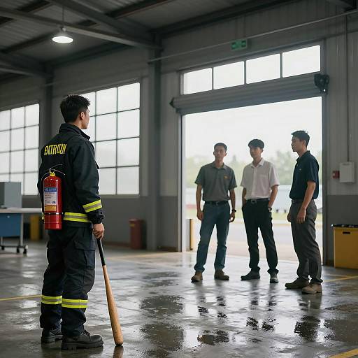 Photorealistic CGI render of an industrial urban loft. Features harsh fluorescent lighting, exposed steel with concrete textures and earthy colors, with realistic textures, plants as decoration, and a stretchable open space.