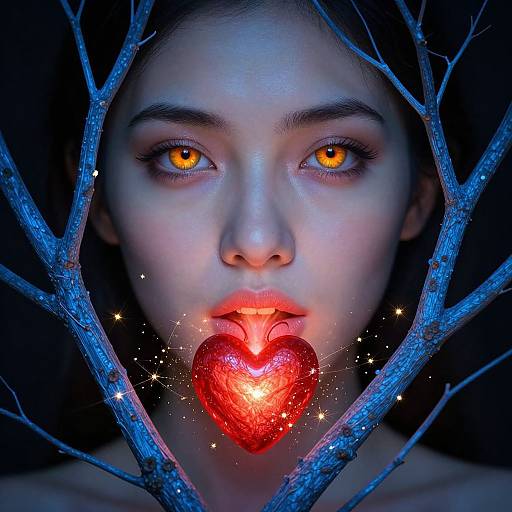 Hyper realistic beautiful AI girl seated in a serene digital garden, glowing bioluminescent flowers surrounding her, soft radiant skin with faint circuitry patterns under luminescent light, tranquil expression with lifelike eyes reflecting artificial intelligence and human emotions in perfect harmony.